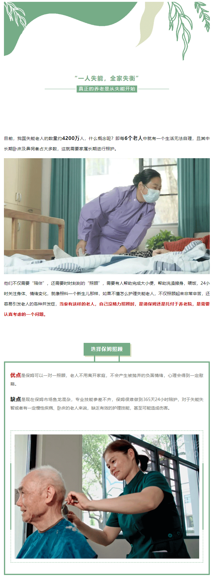 華遠(yuǎn)康養(yǎng)|失能老人照護(hù)難題:保姆還是養(yǎng)老院?