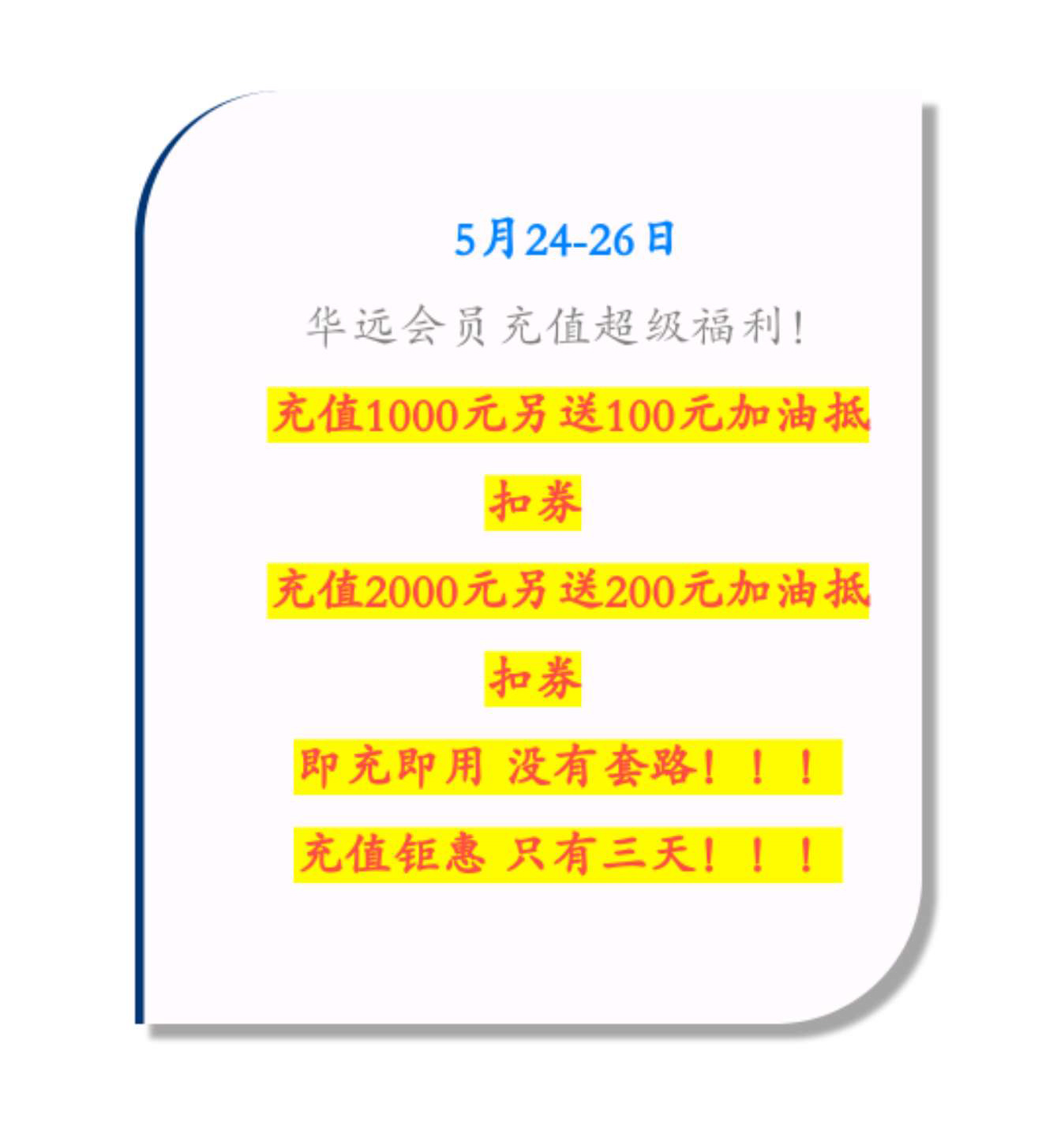 新站開業(yè)鉅惠僅限3天!5月24-26日充值1000送100,會員日最高優(yōu)惠1元/升!衡陽車主福利最多!?。?/h1>
